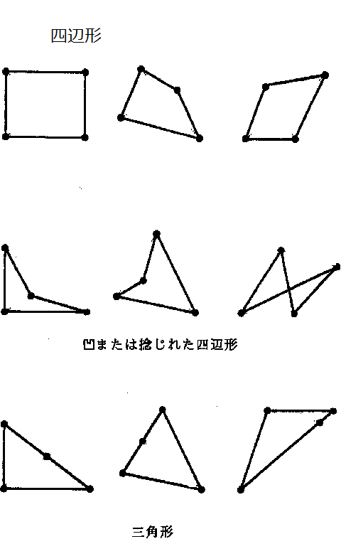 と図形は確定しない。四角形どころか、辺が交差するような歪な図形にもなる。