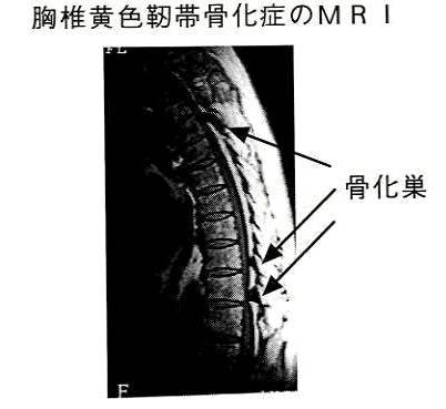 男女比では性差はほとんど認めません。年齢的には20歳以降に認めていますが40歳以上が一般的です。また頚椎後縦靭帯骨化症の患者さんの13%に胸椎黄色靱帯骨化症があるとの報告があり、この病気は脊柱靱帯骨化の一部分の病気と理解した方が良いと思われます。