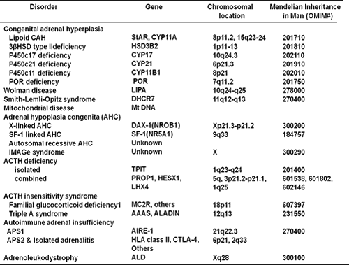 表1:原発性副腎不全を呈する疾患とその責任遺伝子
