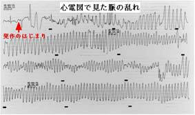 発作が起こらなければ無症状です。発作による症状は立ち眩み、動悸、気分不快などで、ひどい場合には意識を失います。こうした症状は、脈が乱れ心臓が体に血液を送ることができなくなるために生じます(図3)。突然倒れて全身がけいれんすることもあり、周囲の人が「てんかん」と誤ることもあります。発作が止まらない場合、適切な医療処置を行わないと死亡することがあります。また、患者さんの中にはある「きっかけ」から発作を起こす方がいます。この「きっかけ」には運動、精神的な緊張、電話のベル、カミナリやインターホンの音などがあります。女性患者さんの中には生理のときに発作が起こる方もいます。
