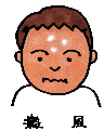| 赤あざ | 単純性血管腫 正中部母斑 a) サーモンパッチ b) ウンナ母斑 イチゴ状血管腫 海綿状血管腫 若年性黒色腫 | スタージ・ウェーバー症候 クリッペル・ウェーバー症候 カサバック・メリット症候 青色ゴム乳首様母斑症候群 |
