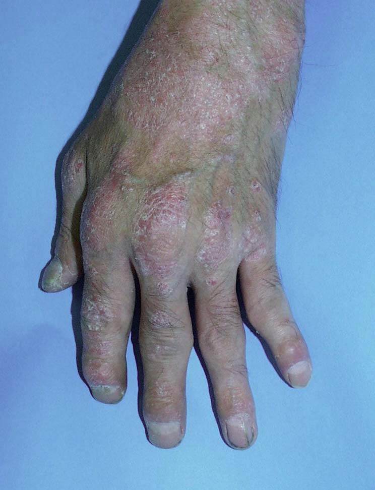 A2: 関節病変は滑膜炎によるものですので慢性関節リウマチと同じく人工関節手術などが可能です。しかし皮膚の炎症があるため細心の注意が必要です。